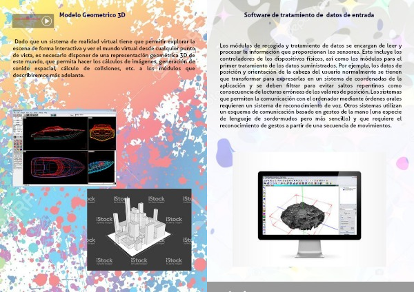 Los módulos de recogida y tratamiento de datos se encargan de leer y procesar la información que proporcionan los sensores. Esto incluye los controladores de los dispositivos físicos, así como los módulos para el primer tratamiento de los datos suministrados. Por ejemplo, los datos de posición y orientación de la cabeza del usuario normalmente se tienen que transformar para expresarlas en un sistema de coordenadas de la aplicación y se deben filtrar para evitar saltos repentinos como consecuencia de lecturas erróneas de los valores de posición. Los sistemas que permiten la comunicación con el ordenador mediante órdenes orales requieren un sistema de reconocimiento de voz. Otros sistemas utilizan un esquema de comunicación basado en gestos de la mano (una especie de lenguaje de sordo-mudos pero más sencillo) y que requiere el reconocimiento de gestos a partir de una secuencia de movimientos.