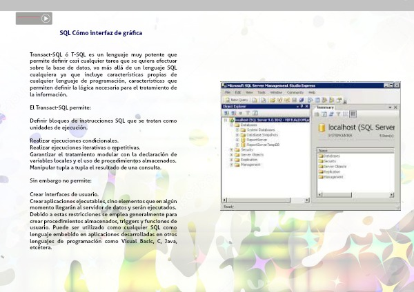 Transact-SQL ó T-SQL es un lenguaje muy potente que permite definir casi cualquier tarea que se quiera efectuar sobre la base de datos, va más allá de un lenguaje SQL cualquiera ya que incluye características propias de cualquier lenguaje de programación, características que permiten definir la lógica necesaria para el tratamiento de la información.
