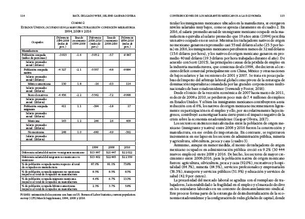 ra) en 2016, los inmigrantes mexicanos percibieron menos de 32 mil dólares