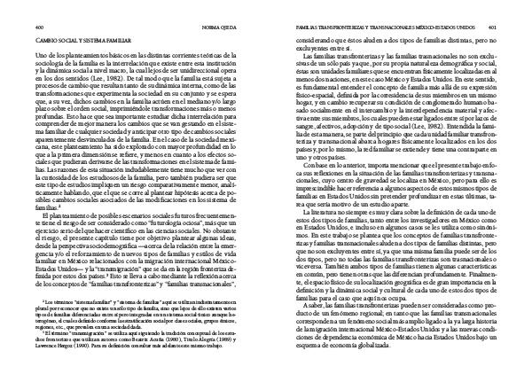 en los dos sentidos (Lee, 1982). De tal modo que la familia está sujeta a