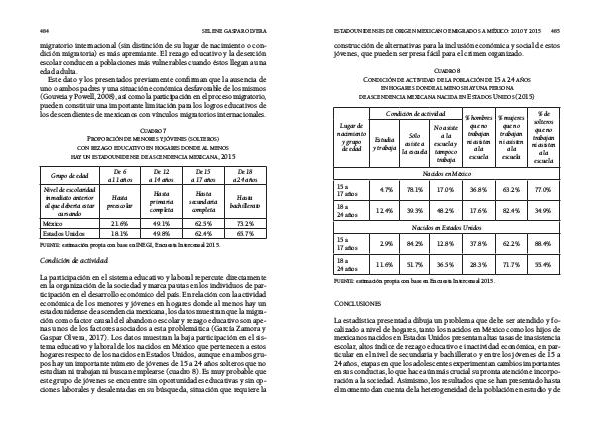 Estadounidenses de origen mexicano emigrados a México: 2010 Y 2015