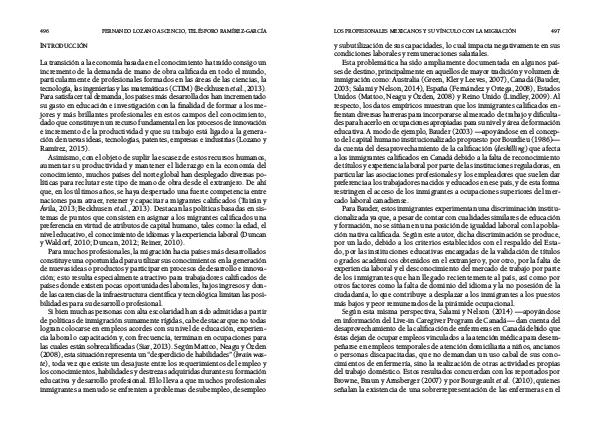 inmigración como: Australia (Green, Kler y Leeves, 2007), Canadá (Bauder,