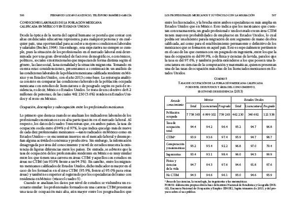 las condiciones laborales de la población mexicana calificada residente en Mé-