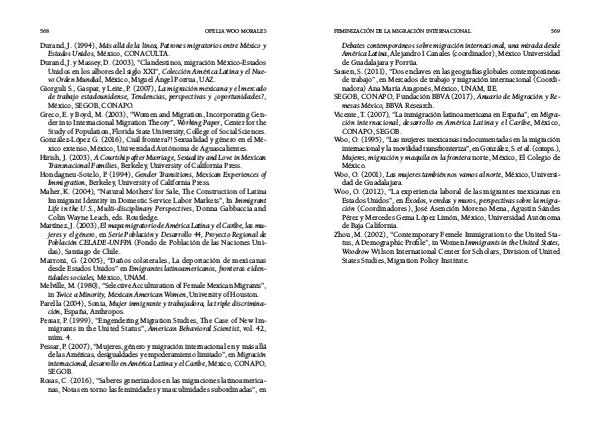 Greco, E. y Boyd, M. (2003), “Women and Migration, Incorporating Gen-