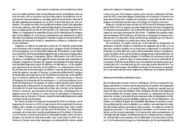 migración de retorno en 2010, la mayor parte de la intensidad de retorno