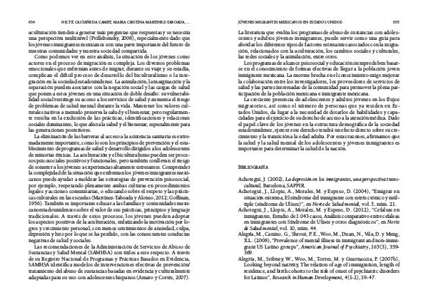 la salud y la salud mental de los adolescentes y jóvenes inmigrantes es