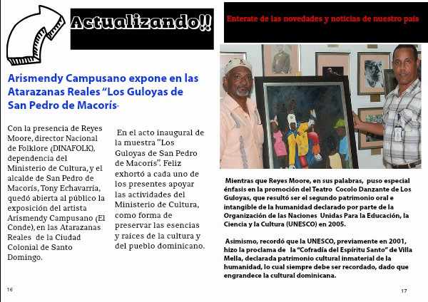 Mientras que Reyes Moore, en sus palabras, puso especial énfasis en la promoción del Teatro Cocolo Danzante de Los Guloyas, que resultó ser el segundo patrimonio oral e intangible de la humanidad declarado por parte de la Organización de las Naciones Unidas Para la Educación, la Ciencia y la Cultura (UNESCO) en 2005.