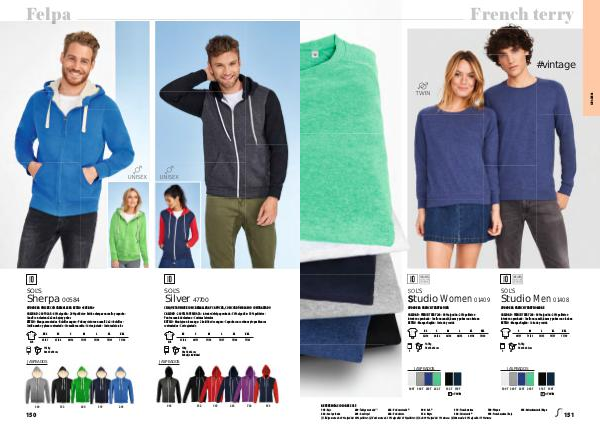 (1) Índigo moteado : 60 % algodón / 40 % poliéster - (2) Verde moteado : 35 % algodón / 65 % poliéster - (3) Ash : 99 % algodón / 1 % viscosa - (4) Gris mezcla : 85 % algodón / 15 % viscosa