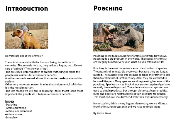 Poaching is the most important cause of extinction of species. Thounsands of animals die every year because they are illegal hunted. The hunters kills this animals to takes their fur or to sell them to collectors. It isn’t necesary. Also, they are captured to be used like pets. Many species are disappearing because of the poaching. Species such as black rhinoceros or caspian tiger have recently been extinguished. The animals who are captured are used to obtain products, but through violence. Angora rabbits, bulls and bears are mistreated to obtain products from them. This must end, we shouldn’t end with their lives unnecessarily.