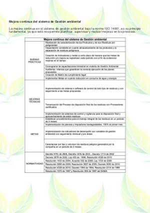 Mejora continua del sistema de Gestión ambiental