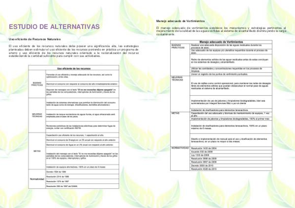 planteadas deben estimular el uso eficiente de los recursos poniendo en práctica un programa de