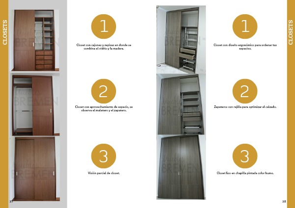 Closet con cajones y repisas en donde se combina el vidrio y la madera.