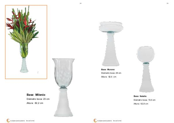 14 Base Milenio Diámetro boca: 23 cm Altura: 82,2 cm CristalerÃa de Occidente Tel: 267 57 93