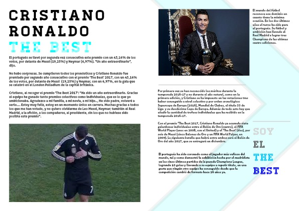No hubo sorpresas. Se cumplieron todos los pronósticos y Cristiano Ronaldo fue premiado por segundo año consecutivo con el premio 'The Best' 2017, con un 43,16% de los votos, por delante de Messi (19,25%) y Neymar, con un 6,97%, en la gala que se celebró en el London Palladium de la capital británica.