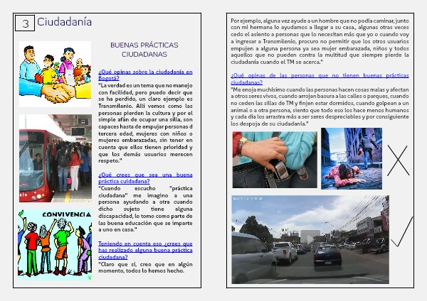 "Cuando escucho "práctica ciudadana" me imagino a una persona ayudando a otra cuando dicho sujeto tiene alguna discapacidad, lo tomo como parte de las buena educación que se imparte a uno en casa."