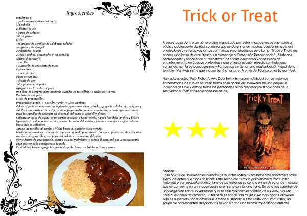 A veces pasa dentro un género algo mancillado por estar muchas veces orientado al público adolescente de fácil consumo que se obtenga, en muchas ocasiones, slashers predecibles o reiterativas cintas con niñitas embrujadas de pelo largo. Truco o Trato me parece una brisa de aire fresco, un homenaje a “Dimensión Desconocida” , “Historias asombrosas” y sobre todo “Creepshow” las cuales ofertaron varias horas de entretenimiento en épocas pretéritas y que en esta ocasión mezcla con habilidad vampiros, hombres lobo, asesinos y fantasmas sin llegar a la masturbación visual de la terrible “Van Helsing” y que incluso llegó a ganar el Premio del Público en el Screamfest.