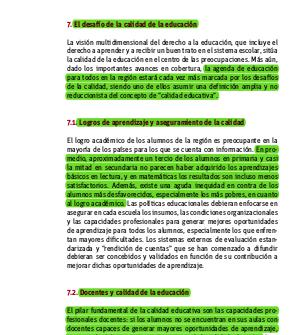 la calidad de la educación en el centro de las preocupaciones. Más aún,
