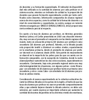 informe encargado por UNESCO (OREALC/UNESCO, 2012) proporciona