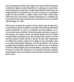 hacia 2015 la tasa bruta de matrícula en educación terciaria promedio