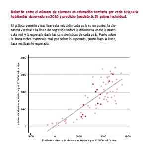 la línea indica matrícula real por sobre lo esperado; punto bajo la línea,