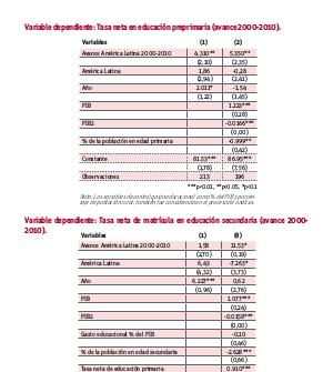 Nota: Las variables de control gasto educacional como % del PIB y porcen-