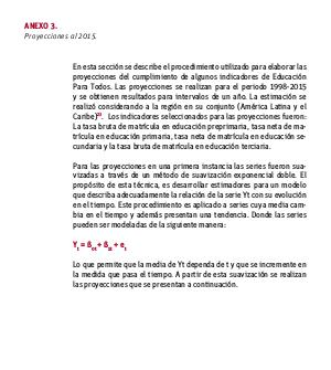 proyecciones del cumplimiento de algunos indicadores de Educación