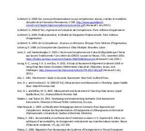 Le Boterf, G. 2006 (5 e Ed.). Ingénierie et Evaluation des Compétences. Paris: éditions d'organisation.