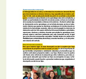porando espacios curriculares pertinentes para cada comunidad escolar, al igual