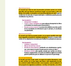 nizar, resguardar y consultar los materiales educativos. Asimismo, el espacio debe