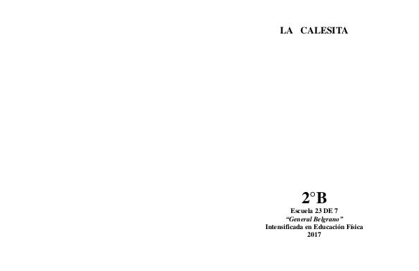 LA CALESITA 2°B Escuela 23 DE 7 “General Belgrano” Intensificada en Educación Física 2017
