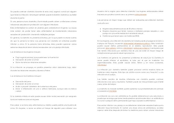 que tiene la infección. Una mujer también puede transmitir clamidia a su bebé