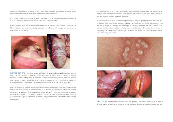 SÍFILIS: Esta enfermedad i nf ecta el área genital, los labios, la boca o el ano y