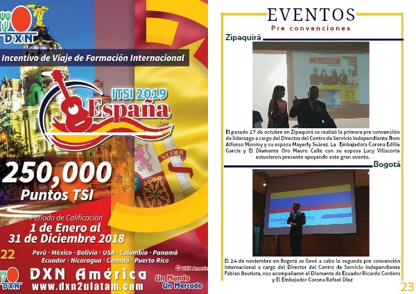 El pasado 27 de octubre en Zipaquirá se realizó la primera pre convención de liderazgo a cargo del Director del Centro de Servicio Independiente Jhon Alfonso Monroy y su esposa Mayerly Suárez. La Embajadora Corona Edilia García y El Diamante Oro Mauro Calle con su esposa Lucy Villacorta estuvieron presente apoyando este gran evento.