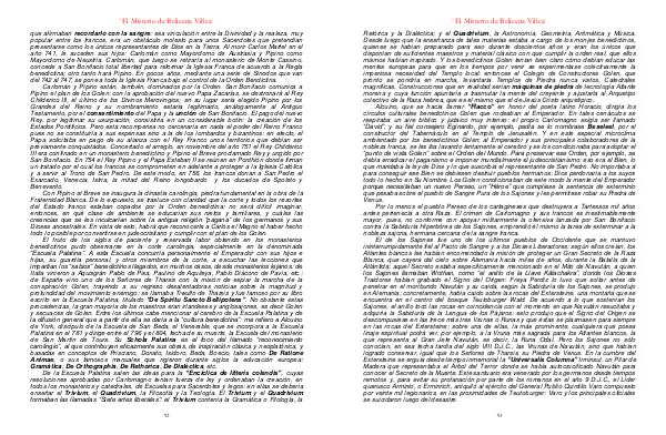 ¨El Misterio de Belicena Villca¨ que afirmaban recordarlo con la sangre: esa vinculación entre la Divinidad y la realeza, muy popular entre los francos, era un obstáculo molesto para unos Sacerdotes que pretendían presentarse como los únicos representantes de Dios en la Tierra. Al morir Carlos Martel en el año 741, le suceden sus hijos: Carlomán como Mayordomo de Austrasia y Pipino como Mayordomo de Neustría. Carlomán, que luego se retiraría al monasterio de Monte Cassino, concede a San Bonifacio total libertad para reformar la Iglesia Franca de acuerdo a la Regla benedictina; otro tanto hará Pipino. En pocos años, mediante una serie de Sínodos que van del 742 al 747, se pone a toda la Iglesia Franca bajo el control de la Orden Bendictina. Carlomán y Pipino están, también, dominados por la Orden. San Bonifacio comunica a Pipino el plan de los Golen: con la aprobación del nuevo Papa Zacarías, se destronará al Rey Childerico III, el último de los Divinos Merovingios; en su lugar sería elegido Pipino por los Grandes del Reino y su nombramiento estaría legitimado, análogamente al Antiguo Testamento, por el consentimiento del Papa y la unción de San Bonifacio. El pago del nuevo Rey, por legitimar su usurpación, consistiría en un considerable botín: la creación de los Estados Pontificios. Pero esta recompensa no cercenaría en nada el poder del Reino Franco pues no se constituiría a sus expensas sino a la de los lombardos y bizantinos: en efecto, el Papa solicitaba en pago de su alianza con el Rey Franco unos territorios que debían ser previamente conquistados. Concertado el arreglo, en noviembre del año 751 el Rey Childerico III era confinado en un monasterio benedictino y Pipino el Breve proclamado Rey y ungido por San Bonifacio. En 754 el Rey Pipino y el Papa Esteban II se reúnen en Ponthión donde firman un tratado por el cual los francos se comprometen en adelante a proteger a la Iglesia Católica y a servir al Trono de San Pedro. De este modo, en 756, los francos donan a San Pedro el Exarcado, Venecia, Istria, la mitad del Reino longobardo y los ducados de Spoleto y Benevento. Con Pipino el Breve se inaugura la dinastía carolingia, piedra fundamental en la obra de la Fraternidad Blanca. De lo expuesto, se trasluce con claridad que la corte y todos los resortes del Estado franco estaban copados por la Orden benedictina: no será difícil imaginar, entonces, en qué clase de ambiente se educarían sus nietos y familiares, y cuáles las creencias que se les inculcarían sobre la antigua religión “pagana” de los germanos y sus Dioses ancestrales. En vista de esto, habrá que reconocerle a Carlos el Magno el haber hecho todo lo posible por convertirse en judeocristiano y cumplir con el plan de los Golen. El fruto de los siglos de paciente y reservada labor obtenido en los monasterios benedictinos pudo observarse en la corte carolingia, especialmente en la denominada “Escuela Palatina”. A esta Escuela concurría personalmente el Emperador con sus hijos e hijas, su guardia personal, y otros miembros de la corte, a escuchar las lecciones que impartían los “sabios” benedictinos llegados, en muchos casos, desde monasterios lejanos: de Italia vinieron a Aquisgrán Pablo de Pisa, Paulino de Aquileya, Pablo Diácono de Pavía, etc.; de España vino uno de los Señores de Tharsis con la misión de espiar la marcha de la conspiración Golen, trayendo a su regreso desalentadoras noticias sobre la magnitud y profundidad del movimiento enemigo: se llamaba Tiwulfo de Tharsis y fue famoso por su libro escrito en la Escuela Palatina, titulado “De Spiritu Sancto Bellipotens”. No obstante estas procedencias, la gran mayoría de los maestros eran irlandeses y anglosajones, es decir Golen y secuaces de Golen. Entre los últimos cabe mencionar al cerebro de la Escuela Palatina y de la difusión general que a partir de ella se daría a la “cultura benedictina”: me refiero a Alcuino de York, discípulo de la Escuela de San Beda, el Venerable, que se incorpora a la Escuela Palatina en el 781 y dirige entre el 796 y el 804, fecha de su muerte, la Escuela del monasterio de San Martín de Tours. Su Schola Palatina es el foco del llamado “reconocimiento carolingio”, al que contribuyen eficazmente sus obras, de inspiración clásica y neoplatónica, y basadas en conceptos de Prisciano, Donato, Isidoro, Beda, Boecio, tales como De Ratione Animae, o sus famosos manuales que rigieron durante siglos la educación europea: Gramática, De Orthographia, De Rethorica, De Dialéctica, etc. De la Escuela Palatina salen las ideas para la “Encíclica de litteris colendis”, cuyas resoluciones aprobadas por Carlomagno tenían fuerza de ley y ordenaban la creación, en todos los monasterios y catedrales, de Escuelas para Sacerdotes y legos: en ellas se debería enseñar el Trivium, el Quadrivium, la Filosofía y la Teología. El Trivium y el Quadrivium formaban las llamadas “Siete artes liberales”: el Trivium contenía la Gramática o Filología, la 92