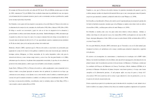 utiliza como forraje de corte para las vacas y los conejos Ríos (1998); en silvopastoreo con vacas en Río