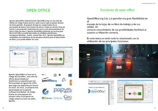 Apache OpenOffice (anteriormente OpenOffice.org ) es una suite de oficina de código fuente abierto ( open source ) que se puede obtener de forma gratuita . El paquete incluye los componentes de un procesador de textos ( procesador de textos ), hojas de cálculo ( hoja de cálculo ), presentación, ilustración del vector, y de almacenamiento de datos ( base de datos ). Apache OpenOffice pretende ser un rival para Microsoft Office y puede ejecutarse en múltiples plataformas , incluyendo Windows , Solaris , LinuxY Mac OS X . Apache OpenOffice es compatible con estándares de documentos abiertos para el intercambio de datos, y se puede utilizar sin costo.