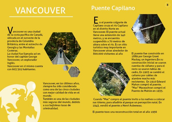 n el puente colgante de Capilano cruza el río Capilano en el distrito Norte en Vancouver. El puente actual tiene una extensión de 140 metros, y se encuentra suspendido a 70 metros de altura sobre el río. Es un sitio turístico muy importante en Vancouver atrae alrededor de 800.000 visitantes al año
