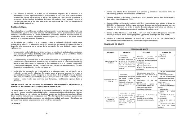 • Elaborar el Plan de Desarrollo Institucional, P. D. I., como estrategia para lograr el desarrollo del P. E. I.; la elaboración de los mapas de riesgo de cada una de las áreas que permitan visibilizar los mismos y por ende el diseño de estrategias para minimizar los mismos, al igual que la reformulación permanente de los planes de mejoramiento.