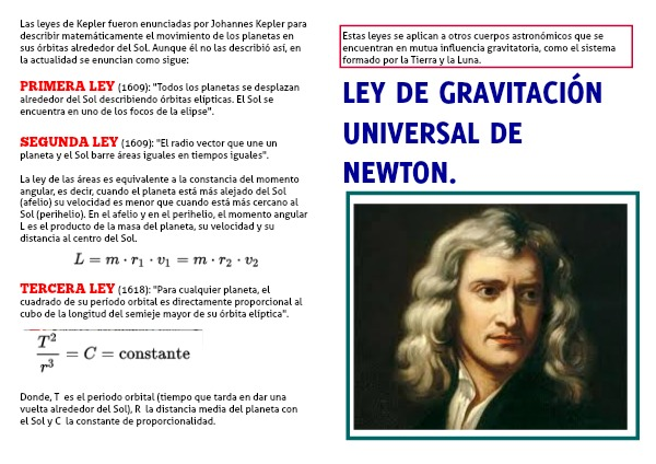 Primera ley (1609): "Todos los planetas se desplazan alrededor del Sol describiendo órbitas elípticas. El Sol se encuentra en uno de los focos de la elipse".