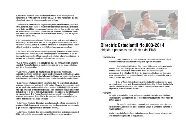 6. La Persona Estudiante deberá abstenerse de referirse ya sea a otras personas compañeras, al PIAM, al personal de éste y a la UCR en forma inapropiada o que con ello dañen la imagen de éstas personas físicas o jurídicas.