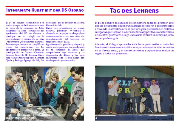 El 24 de octubre respondimos a la invitación que recibiéramos en el mes de junio de la compañía de Artes Integradas “El ático” compuesto por apoderadas del DS de Osorno, a participar en su colegio en la interpretación y música de su obra “Kitschmanía”, con nuestros alumnos.