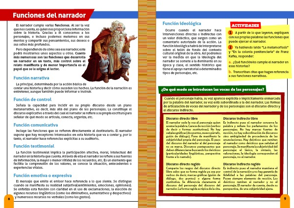 1 A partir de lo que leyeron, expliquen con sus propias palabras las funciones que puede ejercer el narrador.