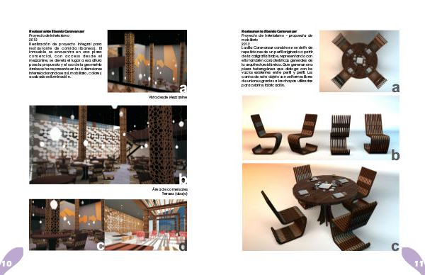 Restaurante libanés Caravansar Proyecto de Interiorismo 2012 Realización de proyecto integral para restaurante de comida libanesa. El inmueble se encuentra en una plaza c o m e r c i a l, c o n a c c e s o d e s d e e l mezzanine, se devela el lugar a esa altura pues la propuesta y el uso de la geometría árabe se hace presente en las 4 diemsiones interrelacionandose así, mobiliario, colores, acabados e iluminación. a