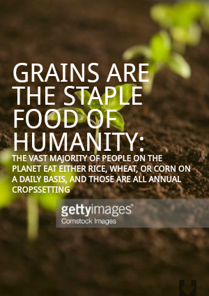 the vast majority of people on the planet eat either rice, wheat, or corn on a daily basis, and those are all annual cropsSetting