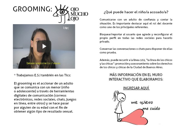 Comunicarse con un adulto de confianza y contar la situación. Es importante destacar aquí el rol del docente como uno de los principales referentes.