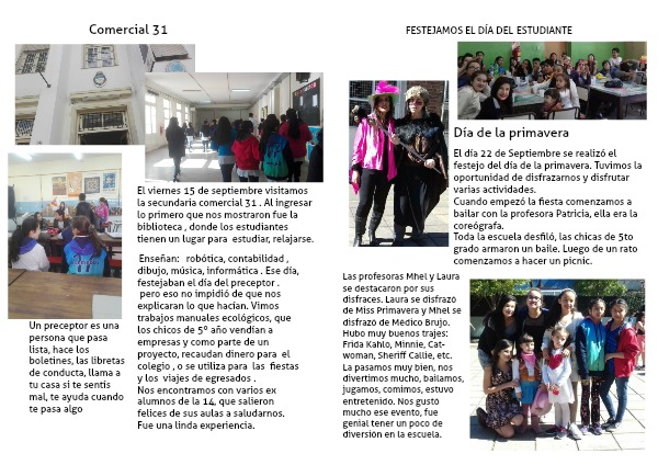 Toda la escuela desfiló, las chicas de 5to grado armaron un baile. Luego de un rato comenzamos a hacer un picnic.