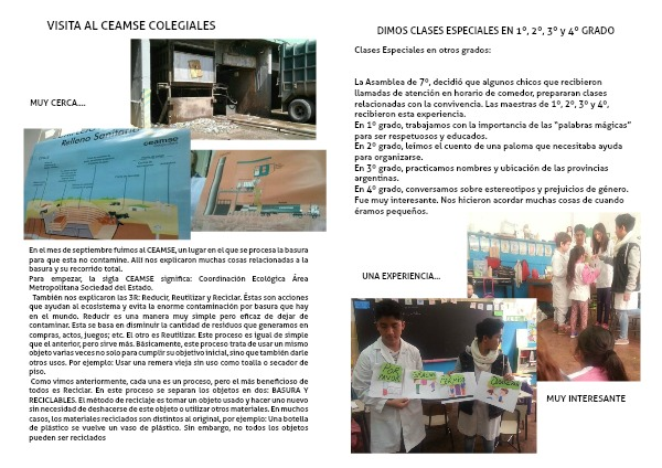 En el mes de septiembre fuimos al CEAMSE, un lugar en el que se procesa la basura para que esta no contamine. Allí nos explicaron muchas cosas relacionadas a la basura y su recorrido total.