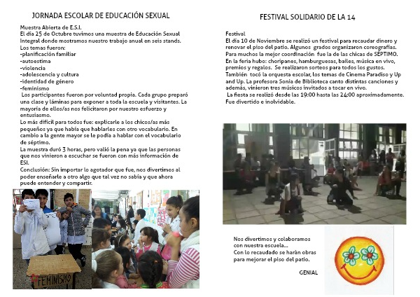 El día 25 de Octubre tuvimos una muestra de Educación Sexual Integral donde mostramos nuestro trabajo anual en seis stands.