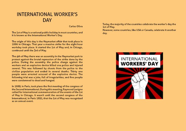 The origin of this day is the Haymarket affair that took place in 1886 in Chicago. That year a massive strike for the eight hour workday took place. It started the 1st of May and, in Chicago, continued until the 3rd of May.
