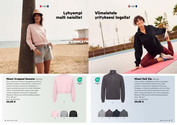 Miami Cropped Sweater 0201032 Rento, lyhyemmän mallinen collegepaita puuvillan ja kierrätetyn polyesterin sekoituksesta. Joustava resori niskassa, helmassa ja hihansuissa. Niskalappu on helposti poistettavissa, joten se voidaan haluttaessa vaihtaa. Pehmeä stabilisoitu kangas, joten paitaa voidaan pestä paljon ilman että se nyppyyntyy. Materiaali: 80 % puuvilla, 20 % kierrätetty polyesteri. Paino: 260 g / m 2 Koot: Naiset XS-XXL